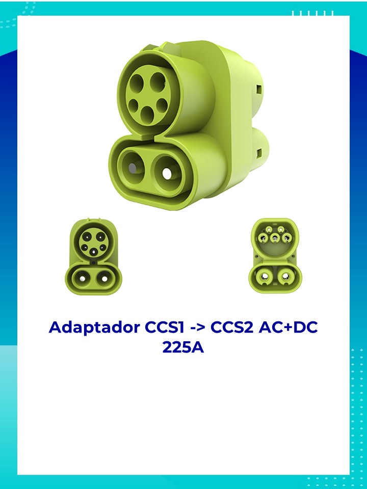 - Descripción del producto: Este adaptador de carga rápida 225A CCS Combo 1 a CCS Combo 2, se usa para cargar vehículos eléctricos con conector CCS2 en cargadores CCS1